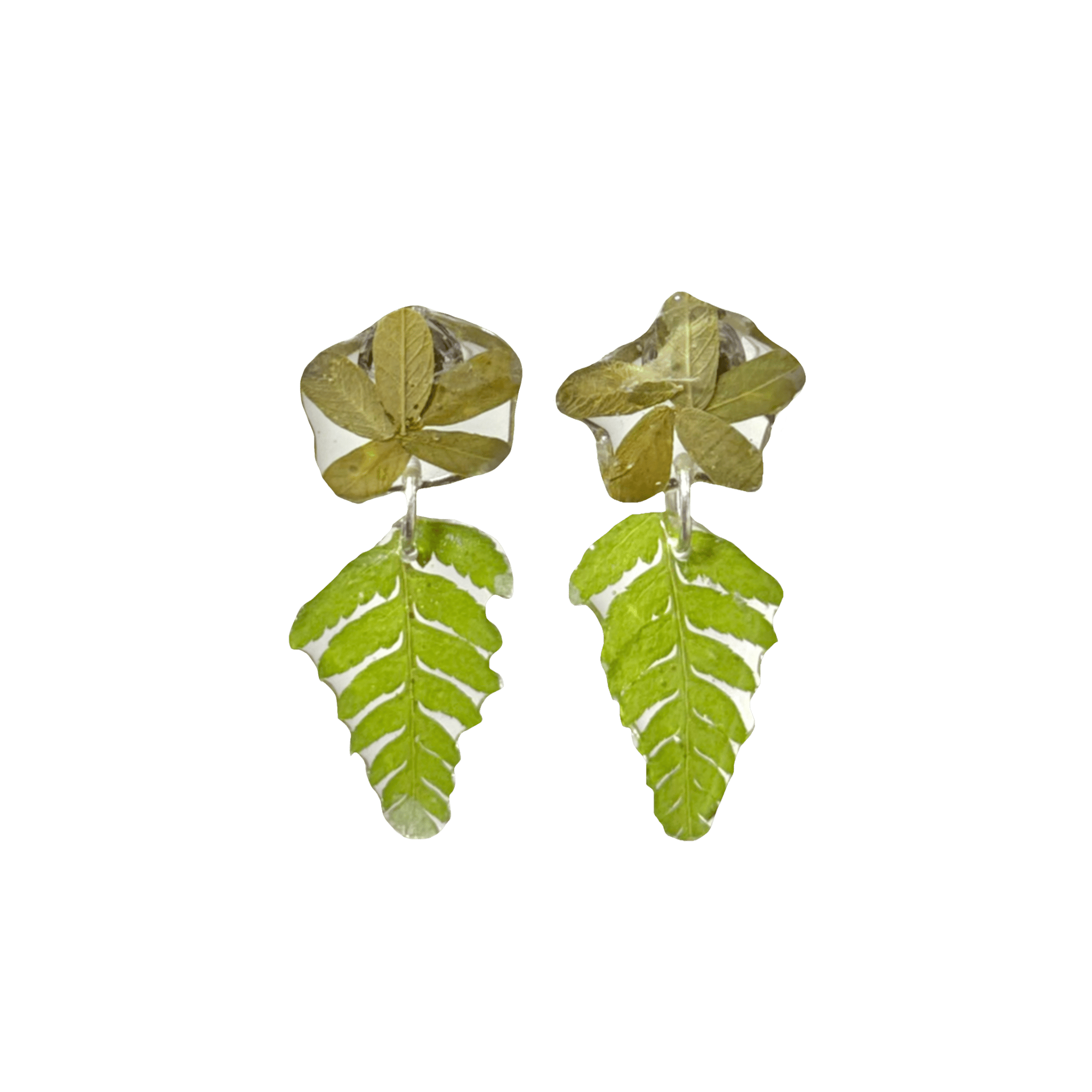 flowers, petals, and foliage from my garden paired up into symmetrical small earrings. top flower sits on earlobe, bottom flower slightly dangles. extremely lightweight. hardware silver plated/gold plated stainless steel